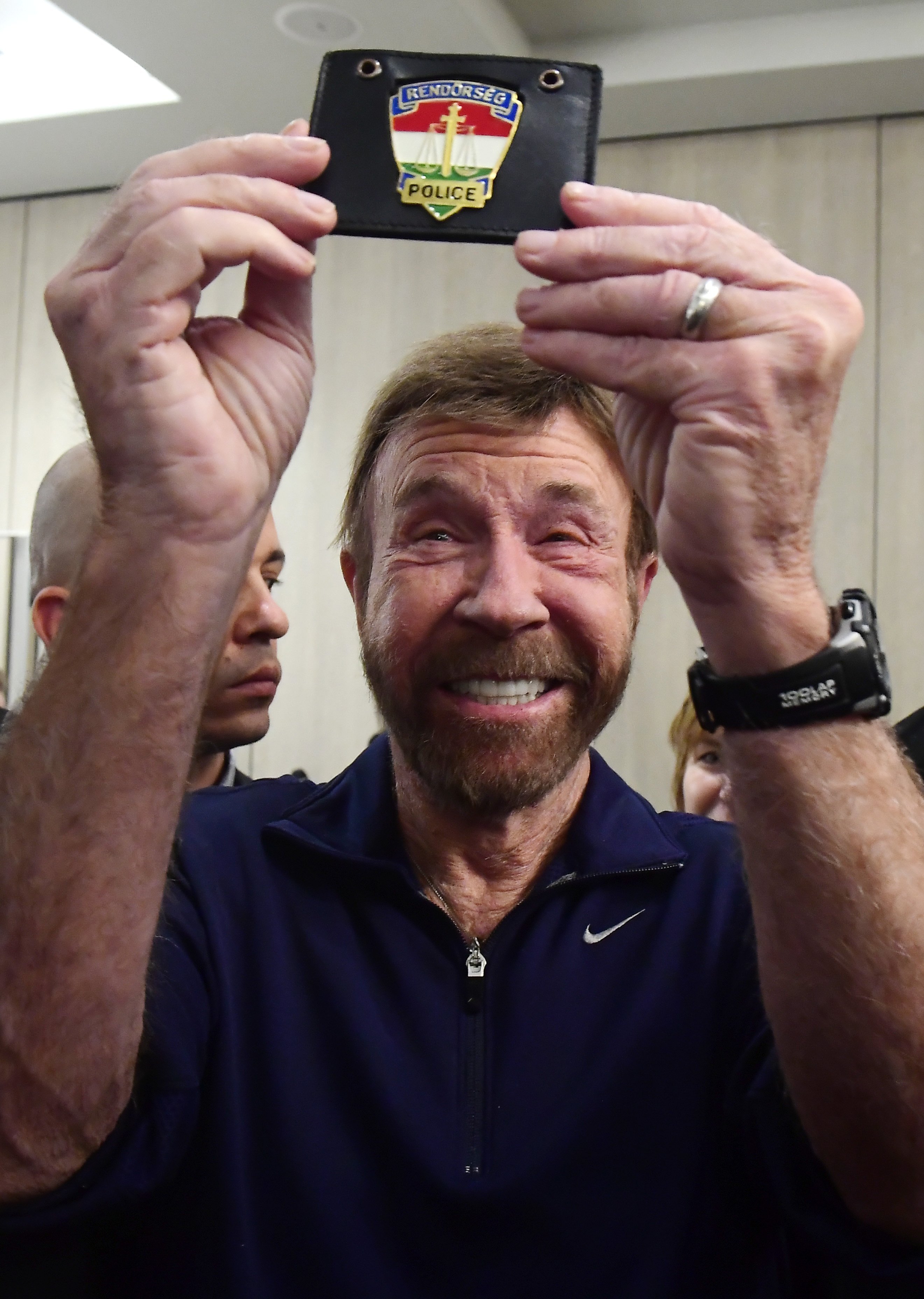 A 78 éves amerikai sztár, aki a világhírt hozó akciómozik (Ütközetben eltűnt, Delta Kommandó, Az elnök zsoldosa) mellett a Walker, a texasi kopó című sikeres tévésorozatból ismerhet a közönség, a Baptista Szeretetszolgálat meghívására szombaton a feleségével részt vett a Cipősdoboz gálarendezvényen a Sportarénában. Az immár tizenötödik alkalommal induló jótékonysági akció során rászoruló gyerekeknek gyűjtenek ajándékokat.