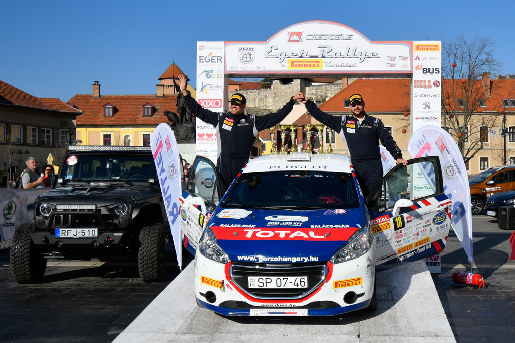 Utólag egyértelműen kijelenthető, hogy kifizetődőbb volt higgadtabban elindulni a szakaszokon, mint a tavalyi, mindenkit, mindenhol legyőzünk felfogásunk. Az autónk gyakorlatilag hiba nélkül teljesítette a versenytávot, mi nem romboltuk össze kocsit, amit így elég lesz csak átnézni, jól lemosni, és már indulhatunk is vele a Miskolc Rallye-ra, nem kell ezúttal rákölteni egy kisebb vagyont. Emellett azért is megérte átgondolni a dolgainkat, mert Egerben nagyon sok pontot szereztünk, egyből az élre álltunk a bajnokságban, sikerült némi előnyre szert tennünk a kategóriatársakkal szemben, ami a lelkünknek is jót tesz. Az Eger Rallye szokásához hűen elég komoly megmérettetés volt, mert az év elején különösen sokan állnak rajthoz a teljes Rallye1 mezőnyében, de a kategóriánkban, illetve a Peugeot kupában is. A Peugeot kupa 2018-hoz képest mérhetetlenül megerősödött, tehetséges versenyzők és vadonatúj 208 R2-k érkeztek a csapatba. Az egri pályák alapvetően tetszettek nekünk, voltak köztük jobb minőségűek, de volt, ami rosszabb volt, ám azt gondolom, hogy egy jó hangulatú, és nem mellesleg eredményes hétvégén vagyunk túl. Az összkép mindenképpen pozitív, megérte átgondolni a dolgainkat. Ennek az eredménye, hogy a 2WD kupában, a Peugeot kupában és a 6-os kategóriában is az első helyen zártuk az egri futamot. Amit lehetett, azt mind megnyertünk.