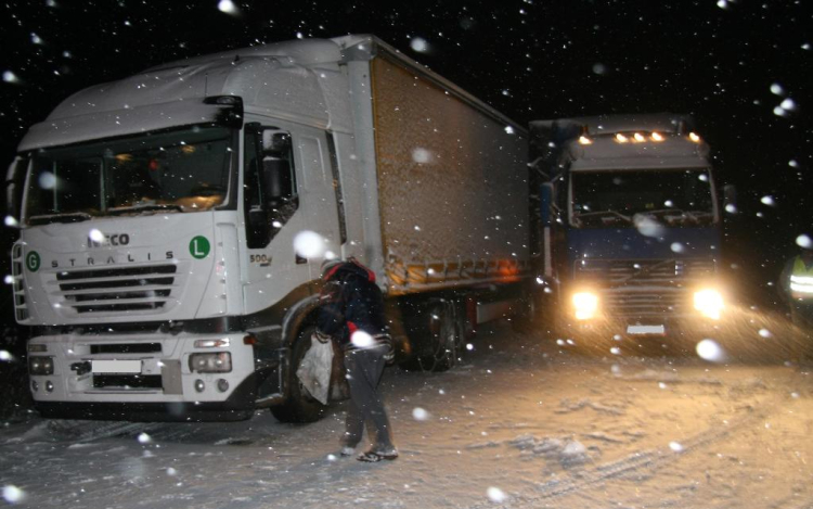 Nádai Tamás elmondta: a havas úton elakadt járműveket az igazgatóság munkatársai segítik. Éjszaka az újabb havazás miatt hét esetben vettek részt bajba jutott autósok, jórészt kamionosok mentésében.