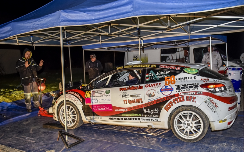 - Az első három szakaszt arra szántuk, hogy megismerjük a kocsit. Teljesen más volt a Rebenlandi pályákon vezetni az autót, mint Lacházán, ráadásul az autó is rengeteget fejlődött Berényi Laciék segítségének köszönhetően. Ezért egy picit óvatosabban kezdtünk, mert hogy ne legyen egyszerű a feladat, a számunkra még ismeretlen karakterisztikájú Hankook gumikkal mentünk fel a pályákra. Ehhez képest nem is sikerült rosszul az első három gyors, de igazából a pénteki utolsó négy szakaszt vártuk Pistivel, mert ott már sötétben kellett száguldani. Általában ezeken az éjszakai gyorsaságikon sok helyezést tudunk javítani.