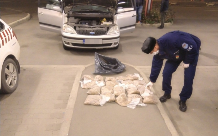 A tájékoztatás szerint a rendőrök tíz román állampolgárt szállító, román rendszámú járművek csomag- és motorterét vizsgálták át, azokban bukkantak rá a 60 kilogrammnyi illegális dohányárura.