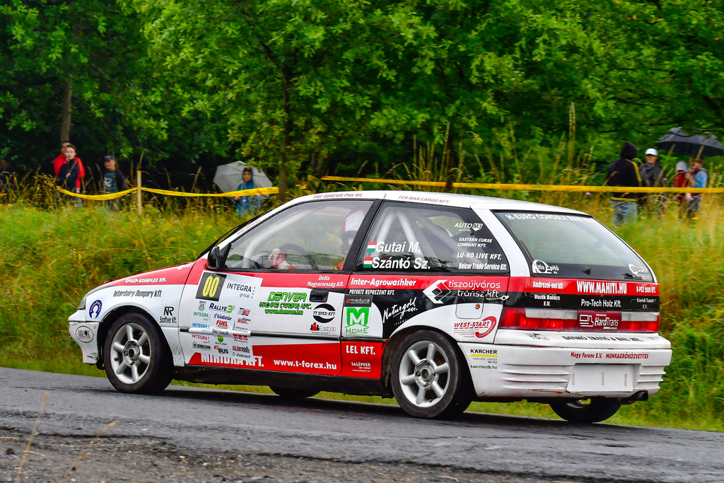 - Az első gyors előtti szervizben a semislick gumi mellett döntöttünk a hűvös idő miatt, nagyjából a második kilométer után már esett az eső. Az első visszafordító előtt picit rövidebb lett a féktáv, mint amit a gumik elbírtak volna a szakadó esőben, leblokkoltak az első kerekek és csak a kéziféket meghúzva tudtam elkerülni az esést. Összefoglalva, annak ellenére is eseménydúsra kerekedett ez a verseny, hogy csak négy gyorsaságit teljesítettünk.