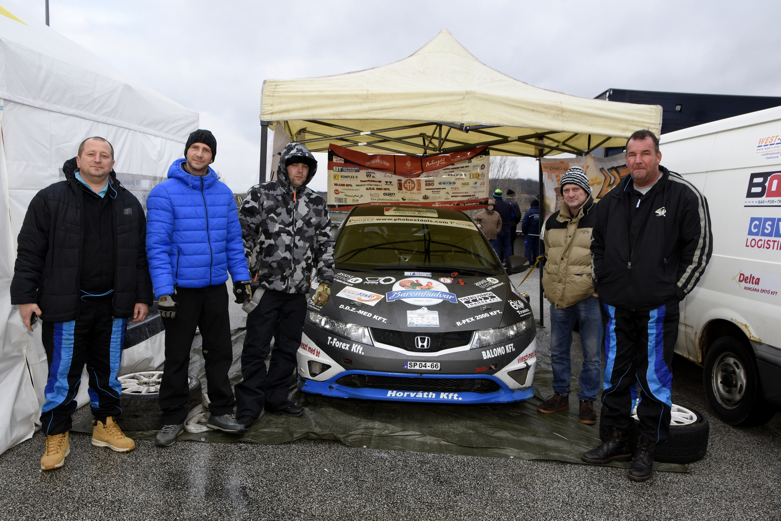 Természetesen a kölcsön hangosításra nem jutott idő, így a rajtnál még a telefon a fülemen, hogy hová kell hozni a két gyors közé a hangosítást. Letettem, 10mp a rajtig. Derűs nyugalommal rajtoltam, csak a sípoló, visító hangosítás próbálta az idegeimet tépázni. Nem ment neki. Hallottam Mátét kizártam a sípolást, leforgattam az autót és helyén volt minden. Beérve a Ringre aztán jött egy újabb fütyülés. Ez már a váltó volt. Gondoltam félreállok az első adandó biztonságos helyen, hogy ne k..-jam szét teljesen. Aztán kattant több nagyot és szinte blokkolt a kerék ahogy eltört a végáttétel. 30 méter volt a kihajtási lehetőségig. Szegény Honda, jól nézett ki ott letámasztva a téli, alacsony szögben beeső napfényben. Kocogtunk a fűben vissza a szervizbe, hogy ne fagyjunk meg.
