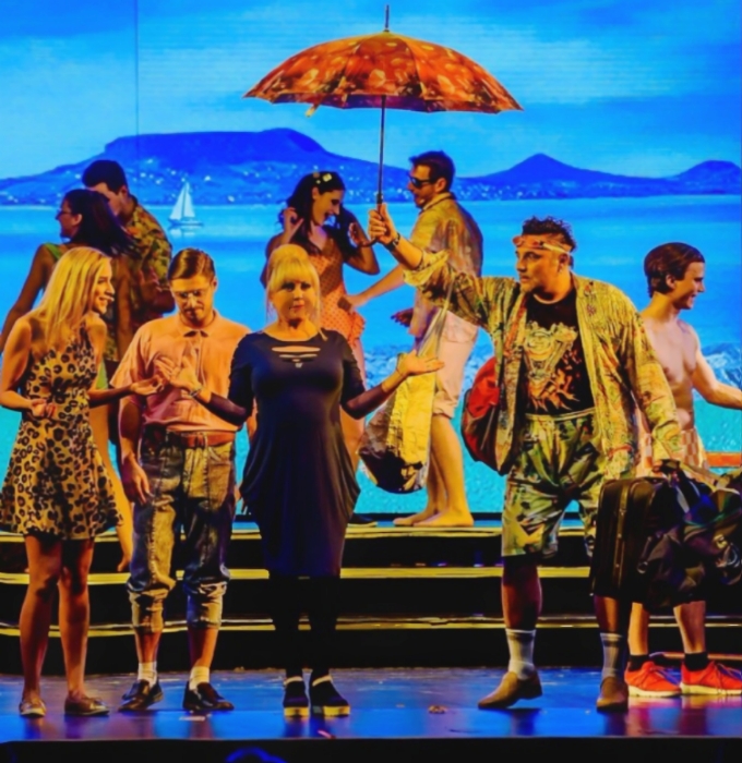 „Mami figurája egy komikus szerep. Ő is sokat énekel, táncol, nagyon az én világom. Ez egy újabb örömforrás az életemben, ami elüt a hétköznapjaimtól, kiléphetek a komfortzónámból és még szeretem is, hogy Maminak hívnak. Fantasztikus a szereplőgárda, nagyon jól éreztem magam a társaságukban. Ott van például Sipos Tomi, aki a párom a musicalben. Velünk mindig történik valami vicces és váratlan, vagy Baronits Gábor, akit anyukája, Ungár Anikó révén egészen kisgyerek kora óta ismerek. Az pedig külön megtiszteltetés, amikor a színészi játékomat is megdicsérik a profi kollégák” – tette hozzá a Sláger TV műsorvezetője, aki Nekünk 8 című műsorában a hazai slágerlisták mai sztárjai mellett az elmúlt évtizedek legendás előadóit is gyakran vendégül látja.
